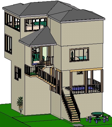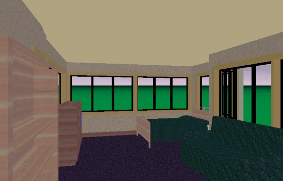 Next, I have prepared a couple screenshots from my rather shitty architect tool of the S&L house-to-be. Loog and myself could live in this one, and Trig, Que and Gand could have a mirrored version connected to ours via a catwalk (which also gives a way for our CAT5 cables to get from one hub to the other on our network). Oh, and Kat could just chill in my room (preferably in the bed with Snake). Hey…a guy has to have dreams, that’s all that keeps me going. I plan on porting the house over to Unreal, eventually…how cool will that be, actually hearing my footsteps on the tile in the kitchen, dude!