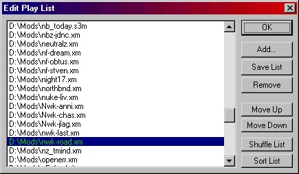 Third news is MOD DRIVE!!! I got a new very old HDD a few days ago. It has a huge storage amount of 260MB (yes, it is possible to have a hard drive with less than a gigabyte, lamers). Anyways, it was just perfect for putting my MODs on, there’s only 12MB free. Just for laughs, here are some specs: 3800RPM, 64KB buffer, and 30ms access time. It takes about 5 seconds to load Out of the Blue (by Acumen), but it makes a cool clicking noise; sounds like a CD changer when it changes CDs. There’s a pic below, as well as some links to good sites to download the patches from.