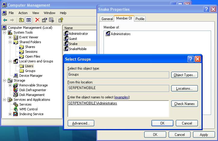 Making the desktop user an Administrator on the laptop.