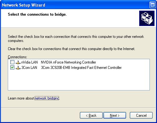 Selecting the NIC(s) that connects to a switch or the laptop.